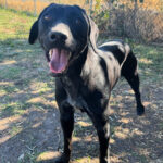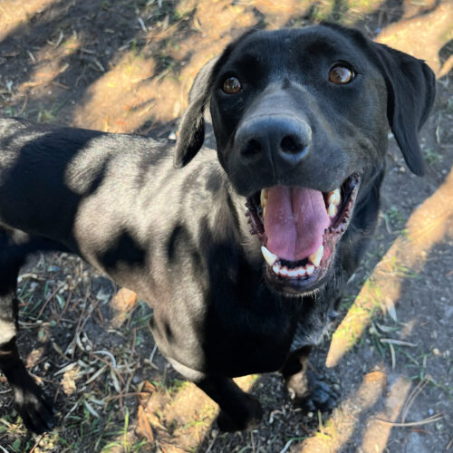 Blair is 1 to 3 years old. She has been available for adoption since 10/3/2025. Blair is a pretty girl. She is full of energy and is excited to see everyone. She loves attention and will do whatever she can to get love from you. She enjoys playing fetch and is really smart. Blair would do best with a home with a yard. Blair seems to know the command “sit,” but would benefit from some training.