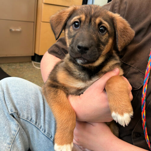 Milky Way is under 6 months old. She has been available for adoption since 3/31/2026. Milky Way is lovable girl with a lot of personality. She is a very energetic pup who wants all of your attention all the time. If she is not satisfied with the affection she’s getting, she will let you know. She is a sweet girl who is looking for a family who can take her on adventures and give her the love she deserves. Milky Way doesn’t know any commands at this time and will need some training.