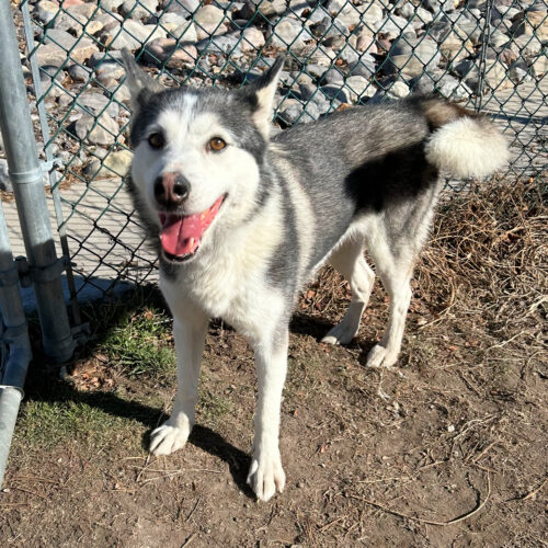 Scout is about 6 years old. She has been available for adoption since 1/23/2026. Scout is a pretty pup. She can be a little timid at first, but is a really sweet girl once she feels comfortable around you. She enjoys cuddling up next to you when she feels safe with you. She seems to be pretty chill, especially for a husky and just enjoys being around you. Scout doesn’t seem to know any commands at this time and could benefit from some training.